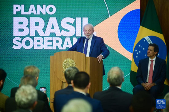 8月13日,巴西總統(tǒng)盧拉出席在首都巴西利亞舉行的“巴西主權(quán)計(jì)劃”啟動(dòng)儀式。新華社發(fā)(盧西奧·塔沃拉攝)