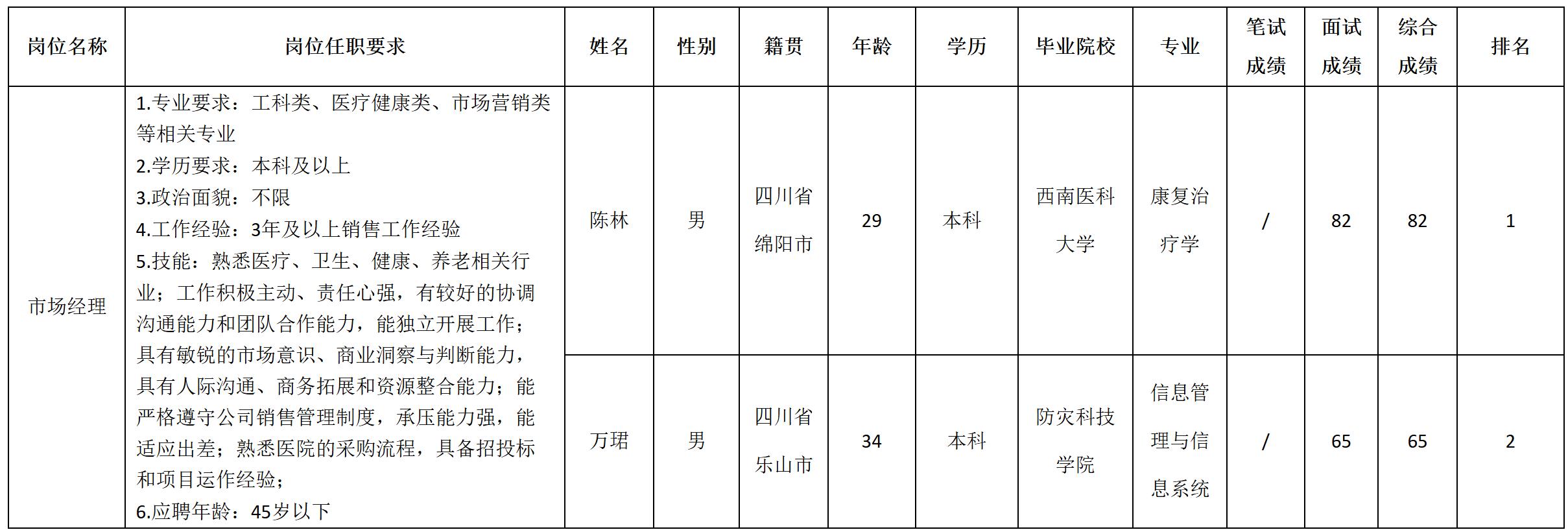 根據(jù)四川長(zhǎng)虹智慧健康科技有限公司發(fā)布的招聘公告及招聘相關(guān)規(guī)定,經(jīng)筆試、面試等程序,現(xiàn)將筆試(面試)成績(jī)予以公示。