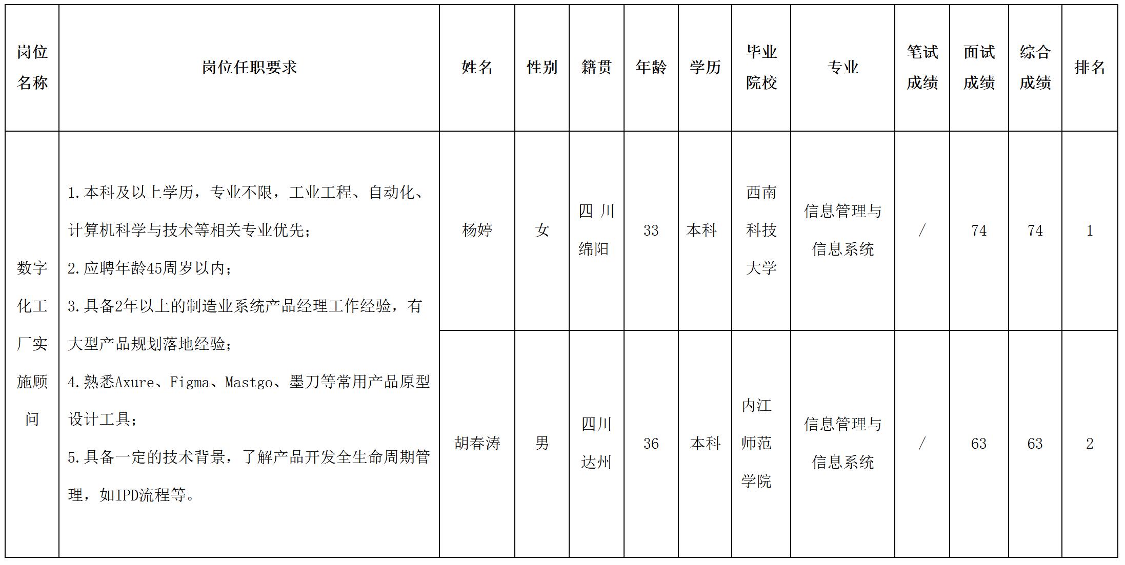 根據(jù)四川虹信軟件股份有限公司發(fā)布的招聘公告及招聘相關(guān)規(guī)定,經(jīng)面試等程序,現(xiàn)將面試成績(jī)予以公示。