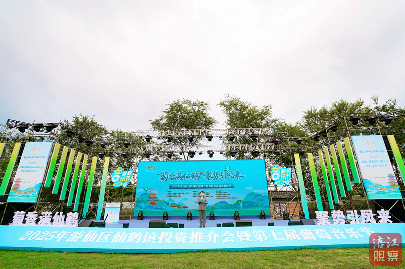 8月16日上午,綿陽市游仙區(qū)仙鶴鎮(zhèn)境內(nèi)的國家AAA級“洛水溪谷”旅游景區(qū)里果香四溢、賓客云集,這里正在舉行以“萄香滿仙鶴·聚勢引鳳來”為主題的2025年游仙區(qū)仙鶴鎮(zhèn)投資推介會暨第七屆葡萄音樂節(jié),該活動吸引了眾多來自省內(nèi)外的企業(yè)家、專家學(xué)者和市民游客。