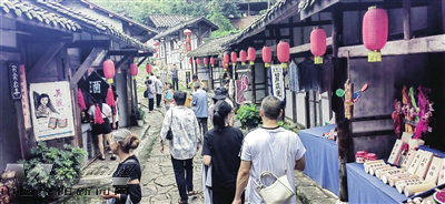 除了自然奇觀外,尋龍山還擁有四川方言電視劇《王保長》的龍隱鎮(zhèn)拍攝基地。景區(qū)以“小、全、特、巧、奇”著稱,復(fù)原了百年前小鎮(zhèn)風(fēng)貌,讓游客仿佛穿越回電視劇演繹的歷史場景。來自綿陽經(jīng)開區(qū)的市民楊先生興奮地說:“小時候看過這部電視劇,很多情節(jié)至今難忘。這次來實地參觀,感覺非常親切,回去后一定要再刷一遍劇重溫經(jīng)典。”