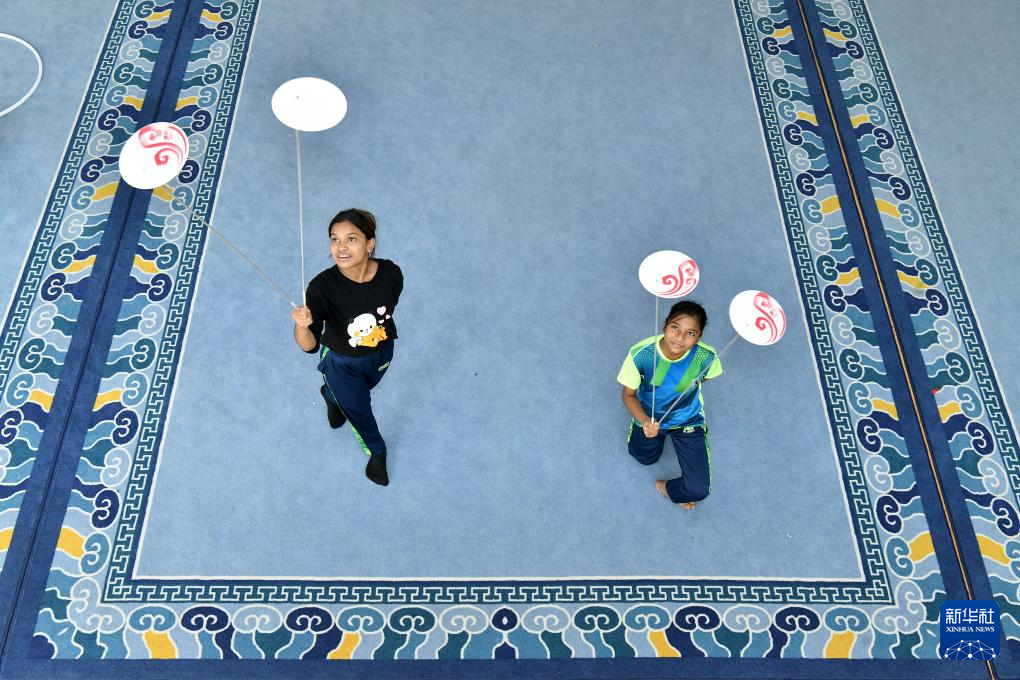 8月20日,來自孟加拉國(guó)的學(xué)員在河北吳橋雜技藝術(shù)學(xué)校排練廳內(nèi)練習(xí)雜技。