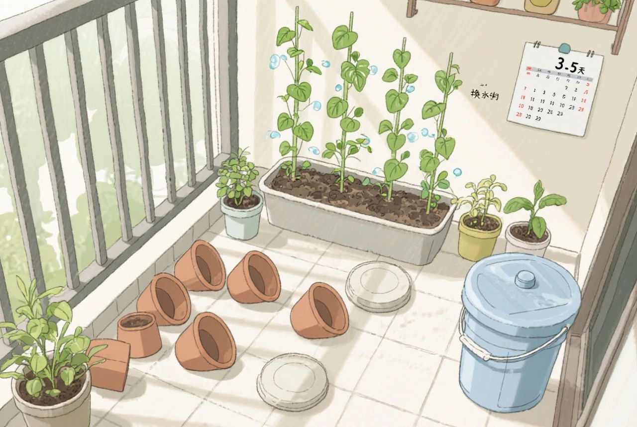 夏秋季,建議撤除花盆托盤,水培植物改用土培方式或3-5天換水一次、清洗根部、刷洗容器壁,避免蚊蟲孳生。每周檢查飲水機(jī)水槽、冰箱底部水盤等隱蔽處防止積水。