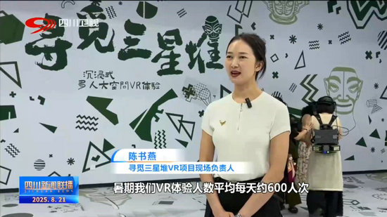 尋覓三星堆VR項(xiàng)目現(xiàn)場(chǎng)負(fù)責(zé)人 陳書燕:暑期我們VR體驗(yàn)人數(shù)平均每天約600人次,游客可以自由觸摸文物并且可以360度觀看文物細(xì)節(jié),沉浸感和互動(dòng)感拉滿,科技感十足。