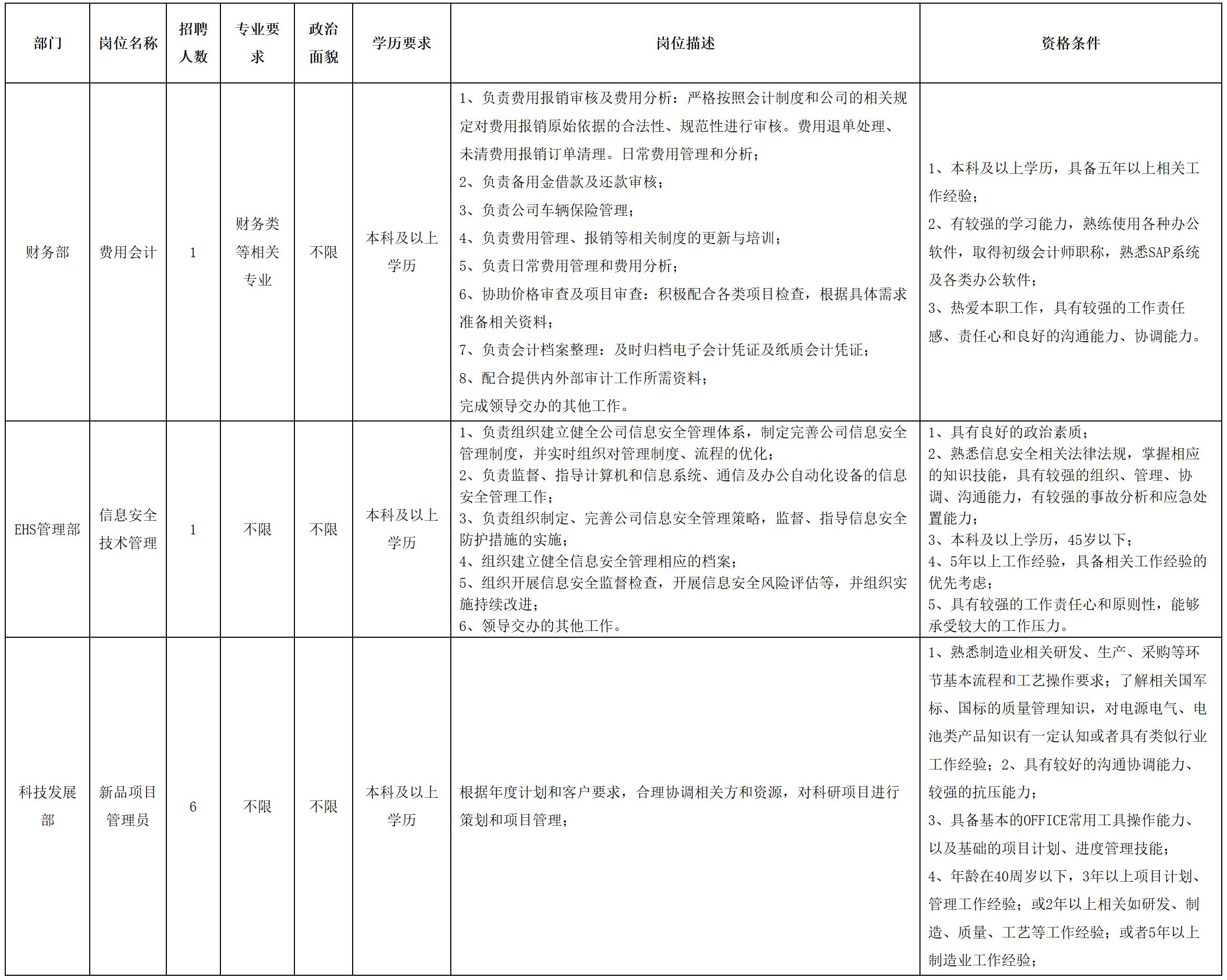 8月14日起招聘信息長期有效,以人員招聘到崗為止