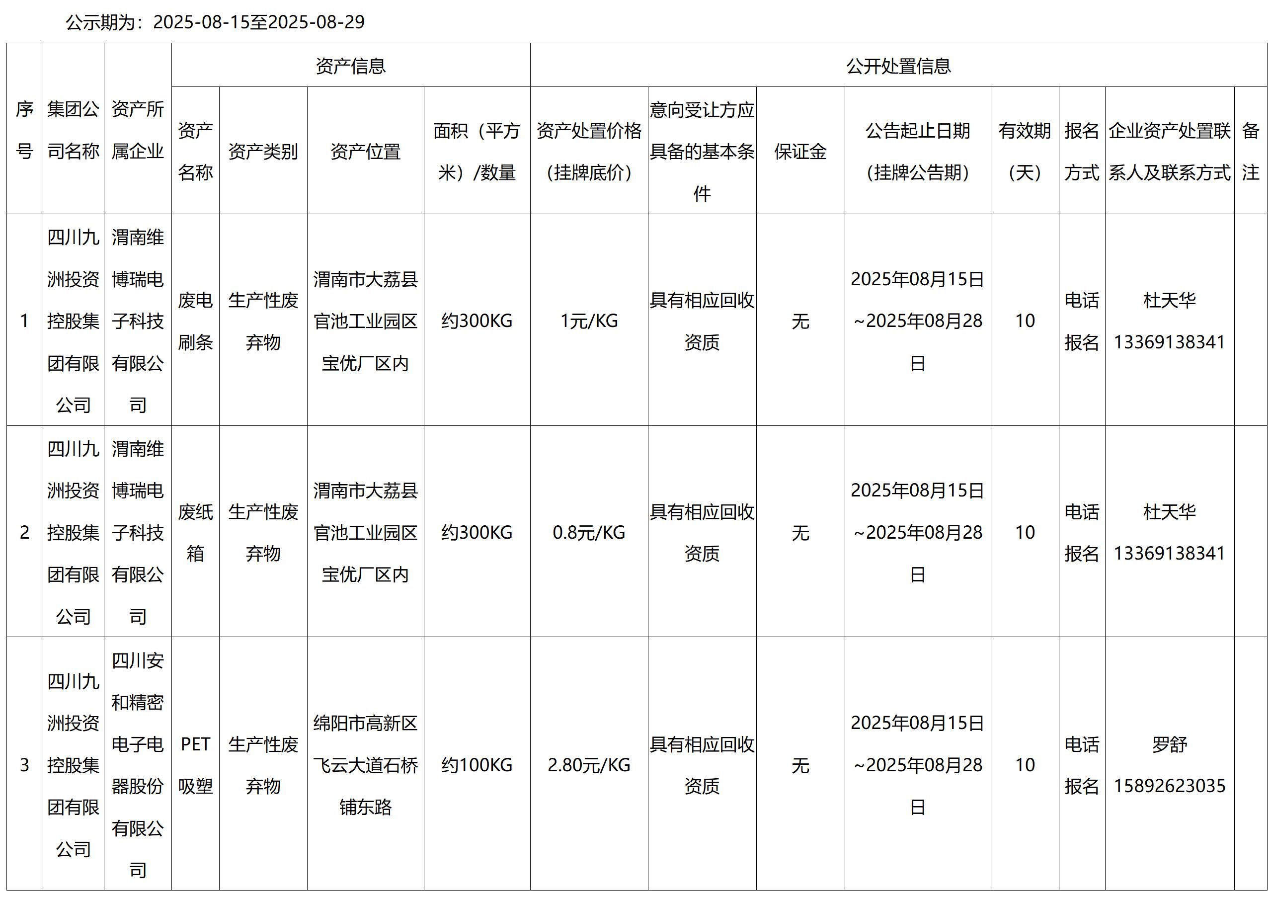 四川安和精密電子電器股份有限公司生產(chǎn)性廢棄物資產(chǎn)處置公告