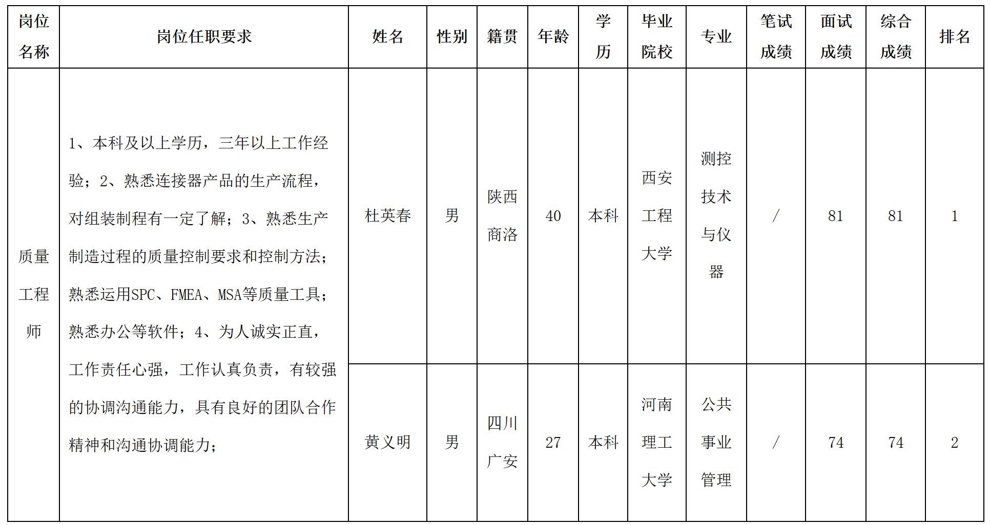 根據(jù)四川華豐科技股份有限公司發(fā)布的招聘公告及招聘相關(guān)規(guī)定,經(jīng)筆試、面試等程序,現(xiàn)將筆試(面試)成績予以公示。