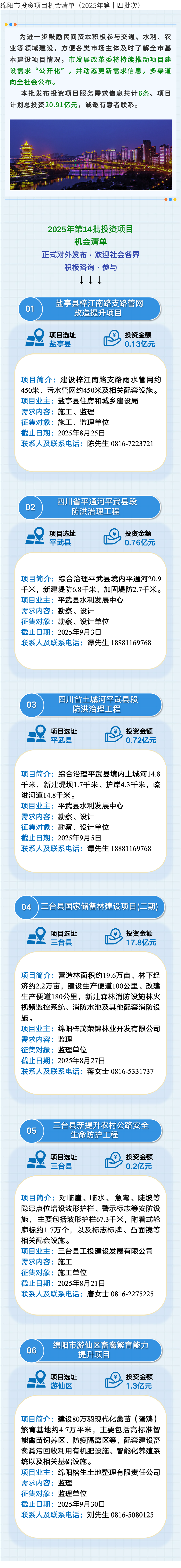 綿陽市投資項目機會清單(2025年第十四批次)