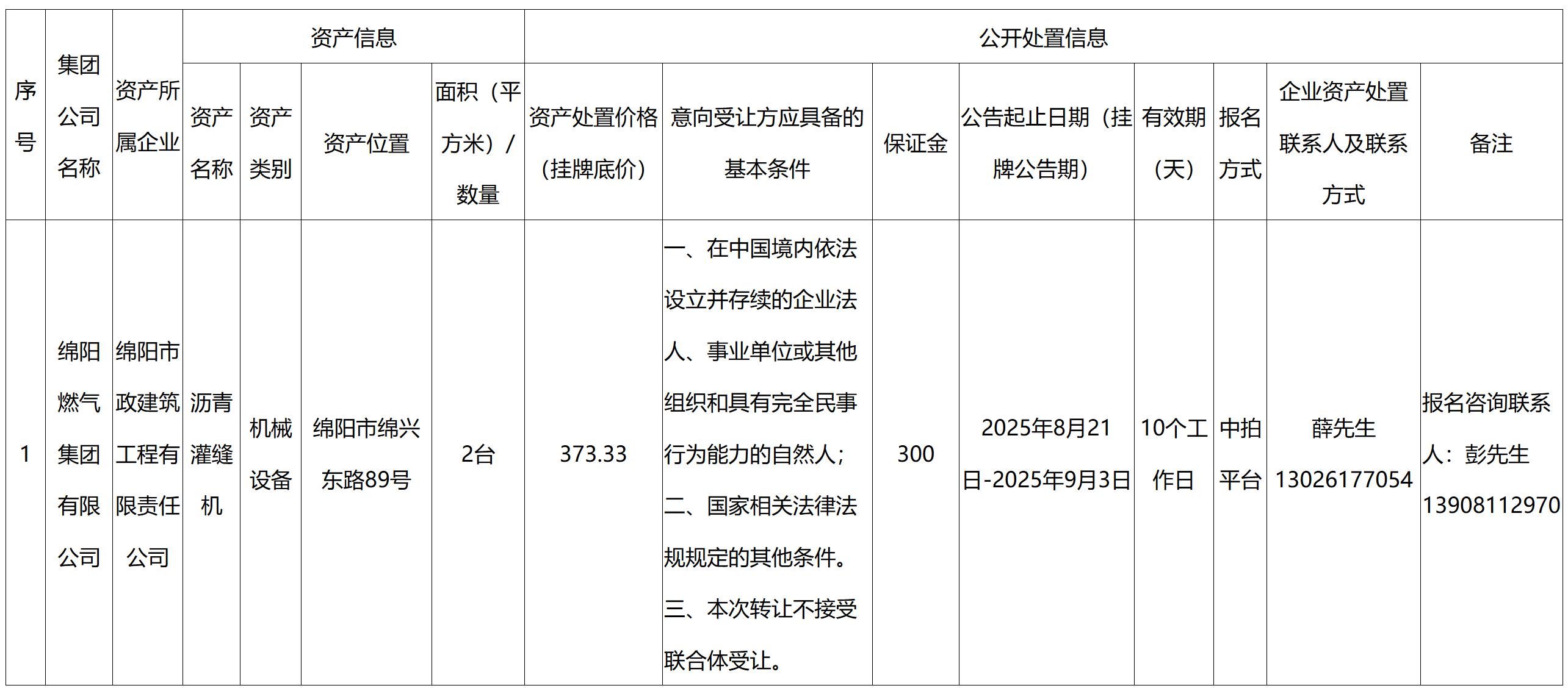 綿陽市政建筑工程有限責(zé)任公司資產(chǎn)處置公告