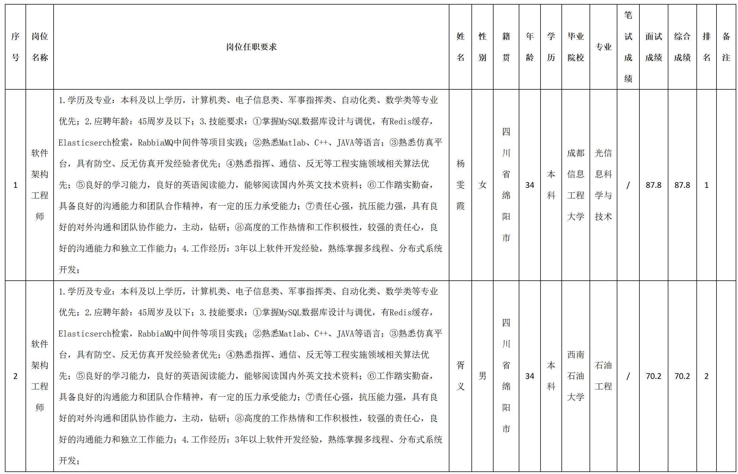 根據(jù)四川九洲電器集團(tuán)有限責(zé)任公司發(fā)布的招聘公告及招聘相關(guān)規(guī)定,經(jīng)筆試、面試等程序,現(xiàn)將筆試(面試)成績(jī)予以公示。
