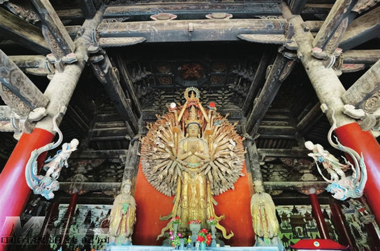 報(bào)恩寺有“六絕”:媲美北京法海寺的彩繪壁畫、全國唯一還能轉(zhuǎn)動(dòng)的明代轉(zhuǎn)輪經(jīng)藏、整木木雕的千手觀音像、樣式繁多的斗拱、全寺近萬條龍、清一色的楠木建筑,它們共同匯成明代建筑之精美的真實(shí)寫照,報(bào)恩寺的“六絕”讓整個(gè)寺廟更具獨(dú)特價(jià)值。