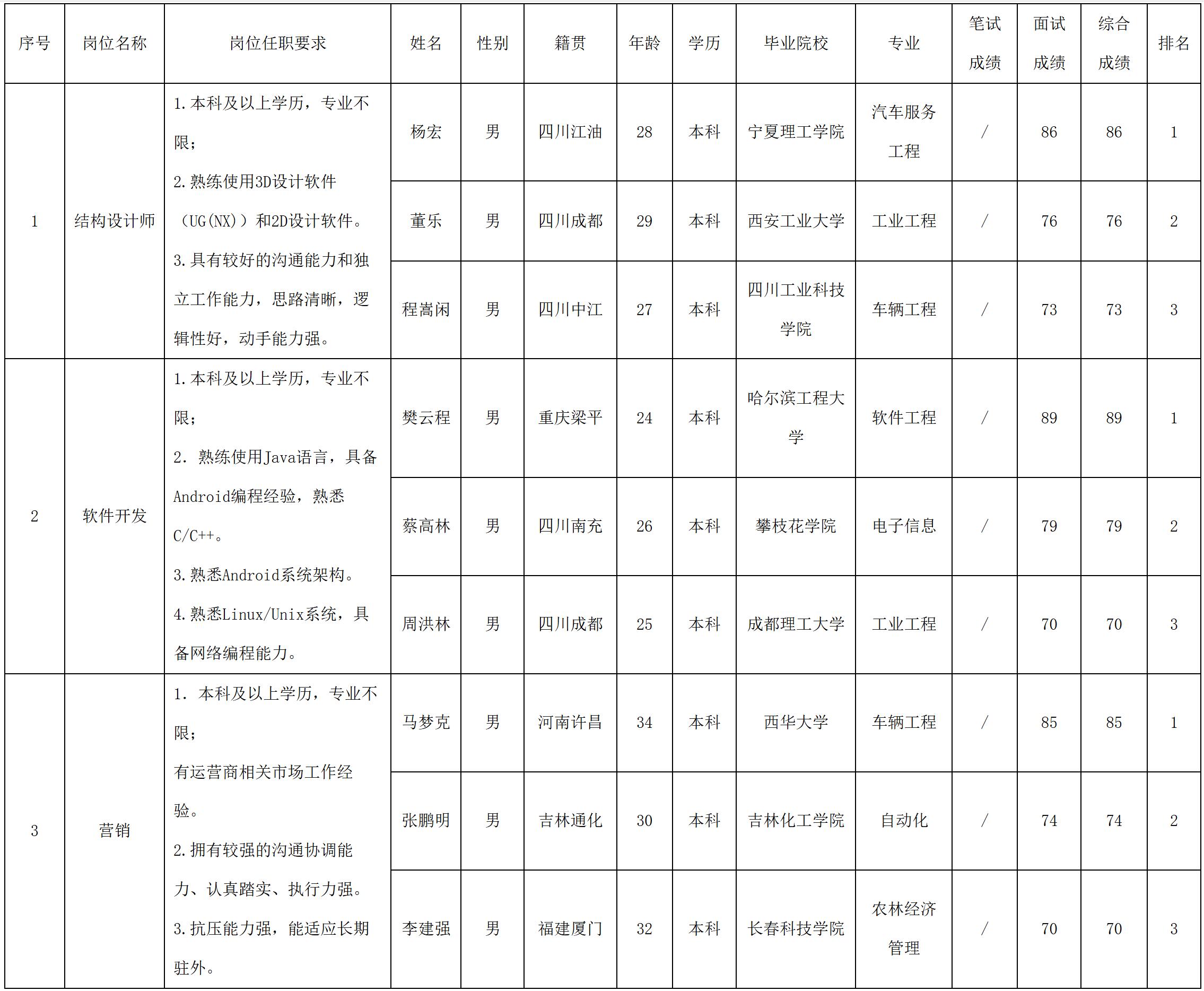 根據(jù)四川長虹新網(wǎng)科技公司發(fā)布的招聘公告及招聘相關(guān)規(guī)定,經(jīng)筆試、面試等程序,現(xiàn)將筆試(面試)成績予以公示。