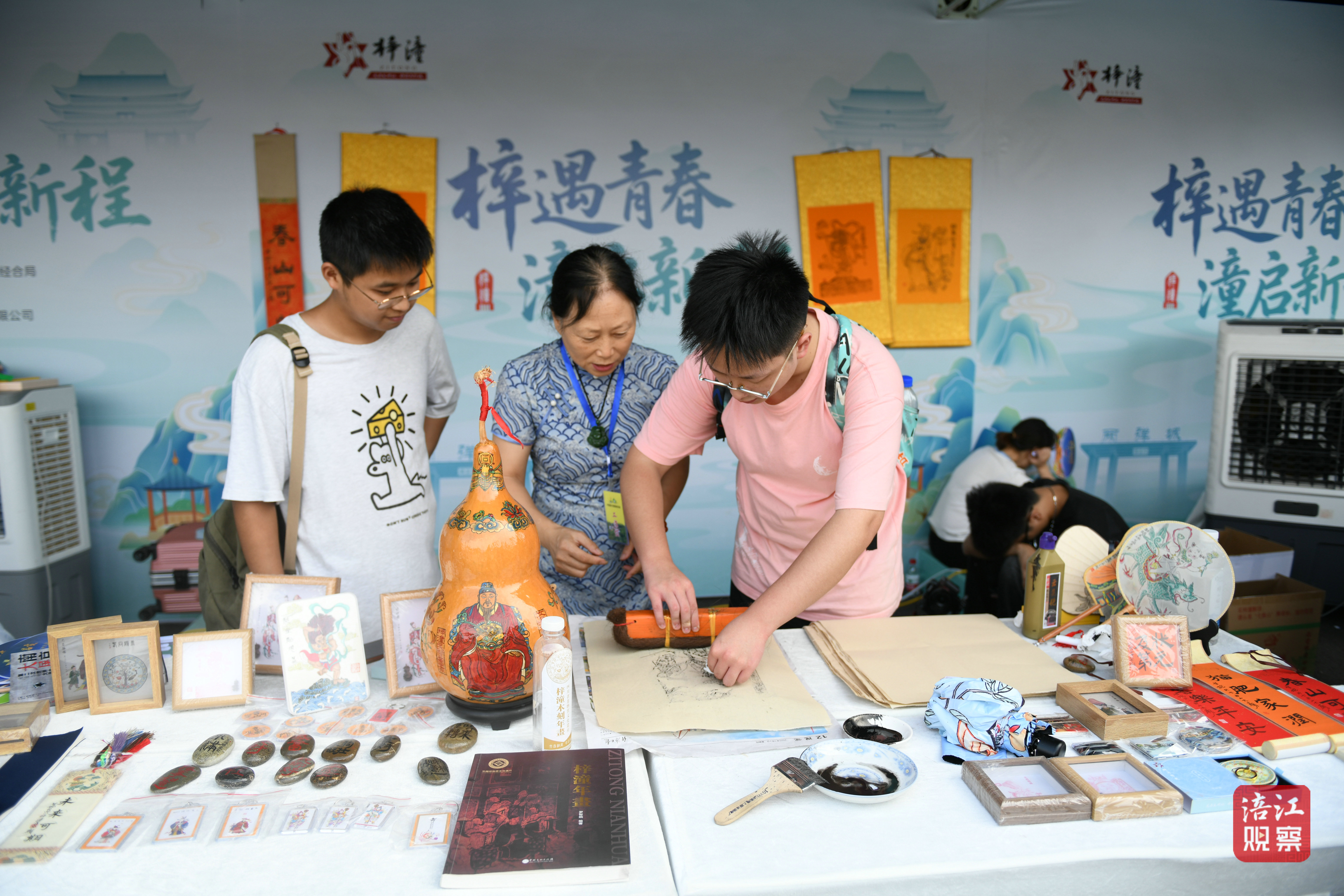當(dāng)天上午10時(shí),記者在四川文化藝術(shù)學(xué)院梓潼校區(qū)國際交流中心前的廣場上看到,這里不僅設(shè)置了抽獎(jiǎng)禮物發(fā)放區(qū),還有梓潼非遺展區(qū)、綜合文旅展區(qū),搭配縣域文化特色打卡點(diǎn)位,吸引了眾多剛辦完入學(xué)手續(xù)的新生們前來打卡。