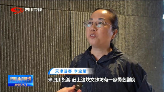 天津游客 李寶榮:來四川旅游,趕上這塊文殊坊有一家蜀藝劇院,給我非常(大)的震撼。他們的演出質量是非常棒的,演員非常專業(yè),互動感很強的,里邊的蓋碗茶也非常地香。