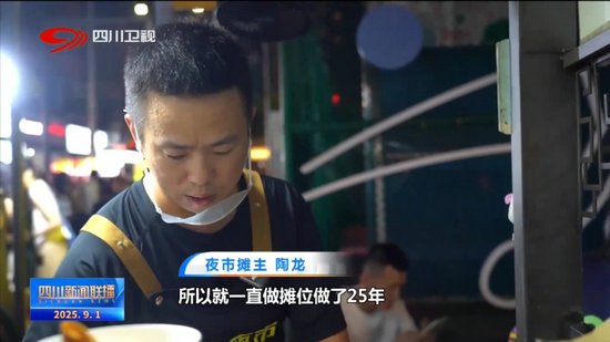 夜市攤主 陶龍:因為成都的地攤經濟比較包容,所以就一直做攤位做了25年,因為一個傳統小吃嘛,總要有人傳承嘛,爭取以后也是一家百年老店嘛。