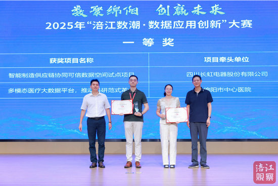經(jīng)過(guò)一整天角逐,最終評(píng)選出一等獎(jiǎng)2名、二等獎(jiǎng)7名、三等獎(jiǎng)10名。其中,四川長(zhǎng)虹電器股份有限公司的“智能制造供應(yīng)鏈協(xié)同可信數(shù)據(jù)空間試點(diǎn)項(xiàng)目”、綿陽(yáng)市中心醫(yī)院的“多模態(tài)醫(yī)療大數(shù)據(jù)平臺(tái),推動(dòng)科研范式革命”分別獲得綜合賽道和醫(yī)療健康賽道第一名。