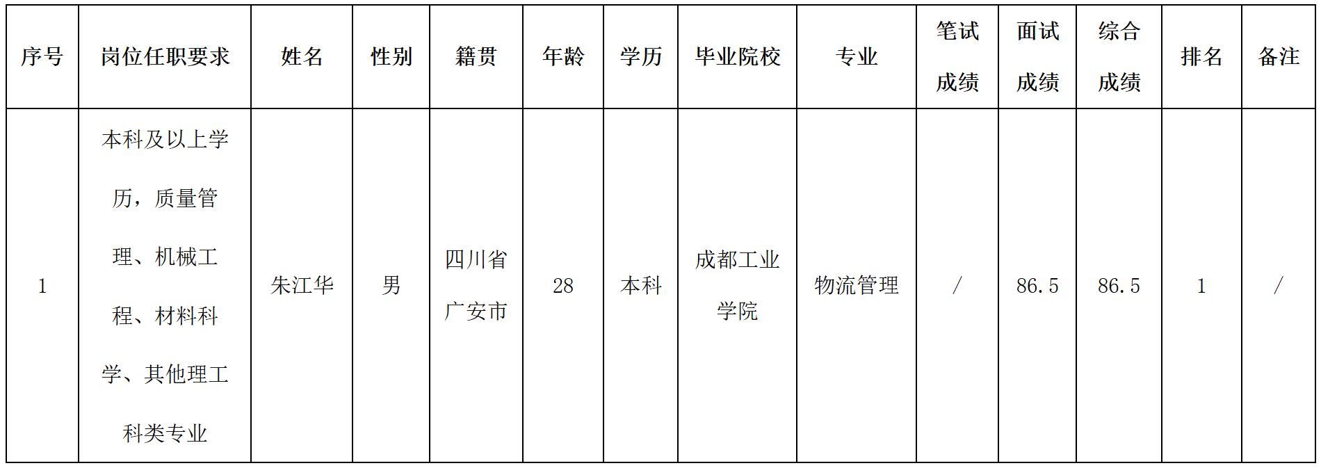 根據(jù)四川波鴻實業(yè)有限公司發(fā)布的招聘公告及招聘相關(guān)規(guī)定,經(jīng)面試等程序,現(xiàn)將面試成績予以公示。