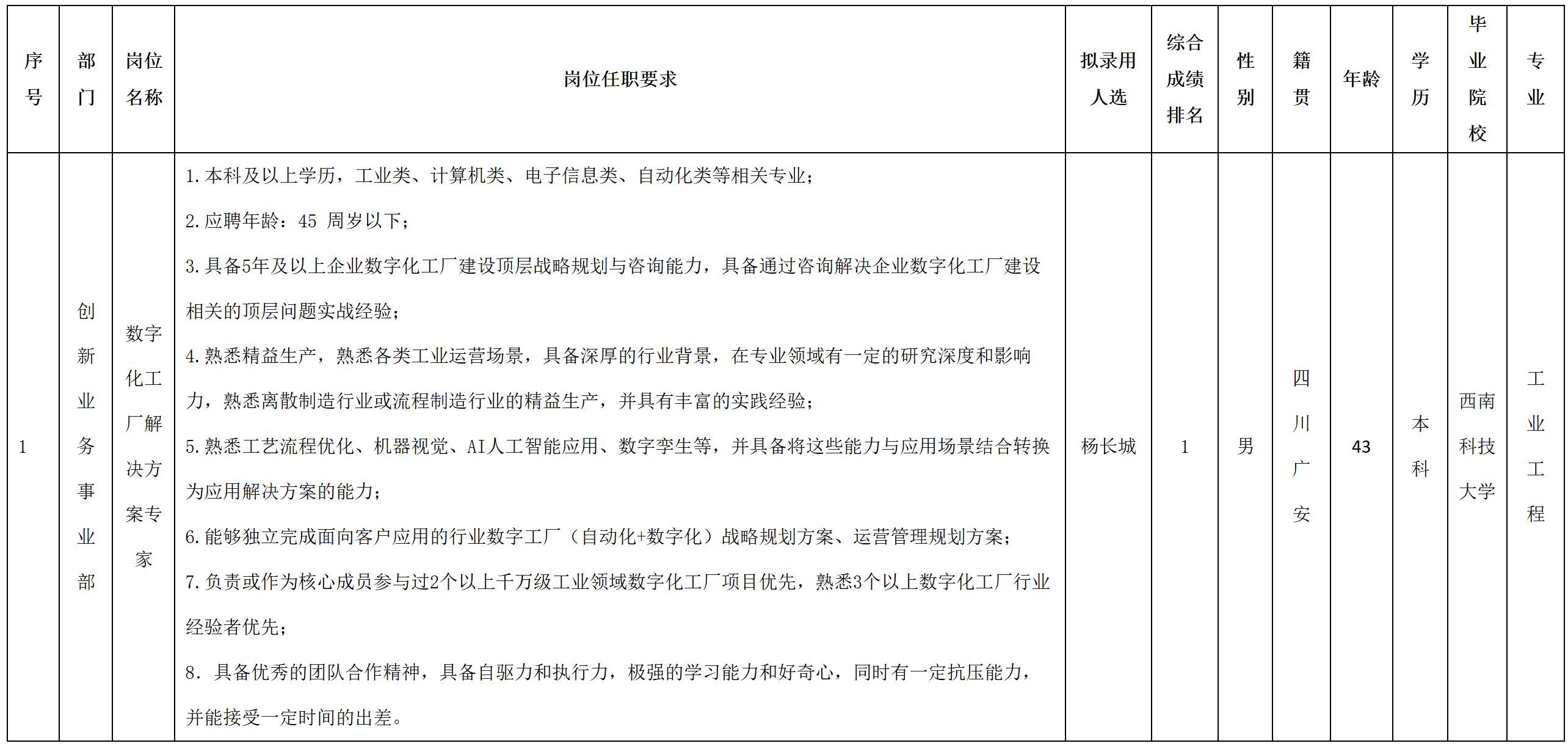 根據(jù)四川虹信軟件股份有限公司發(fā)布的招聘公告及招聘相關規(guī)定,經(jīng)面試、考察、體檢等程序,擬錄用楊長城同志到四川虹信軟件股份有限公司工作,現(xiàn)予以公示,具體情況如下: