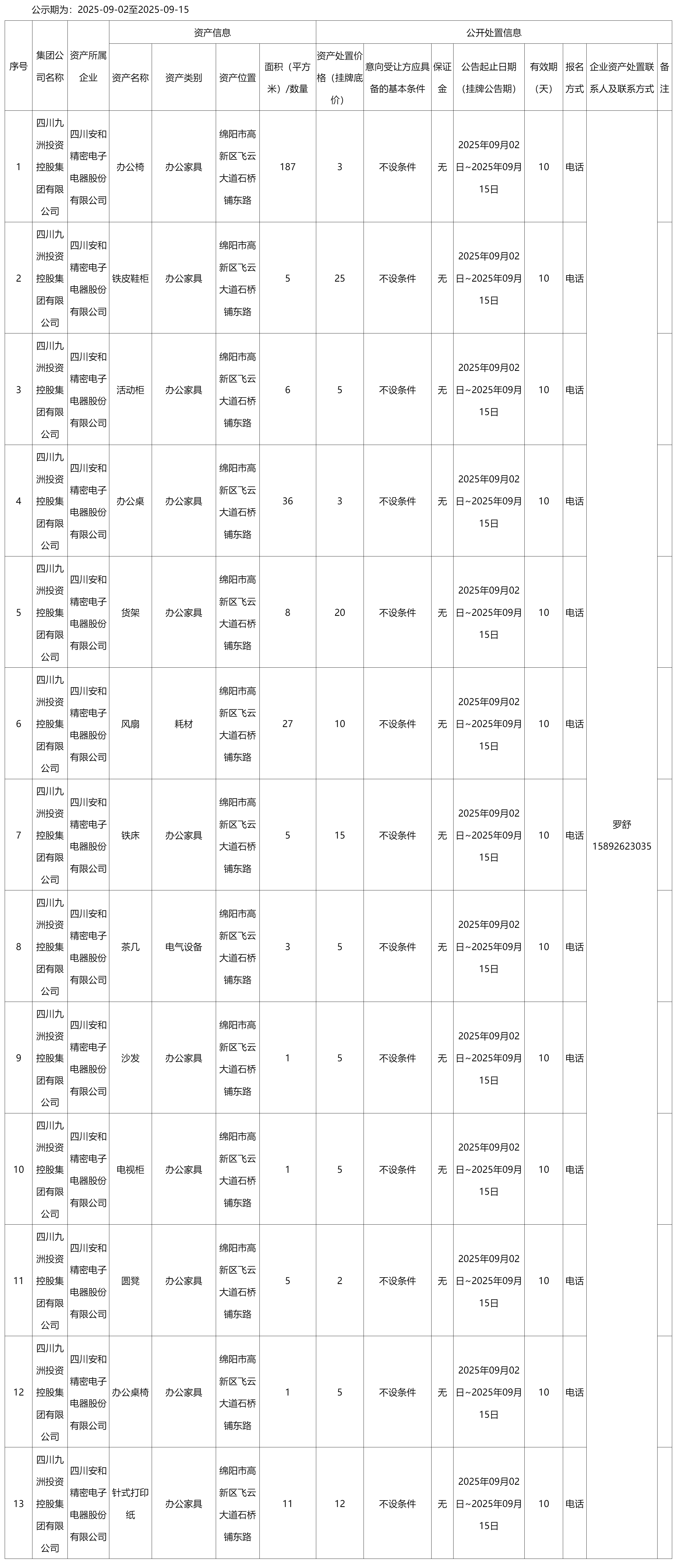 四川安和精密電子電器股份有限公司廢舊辦公用品資產(chǎn)處置公告