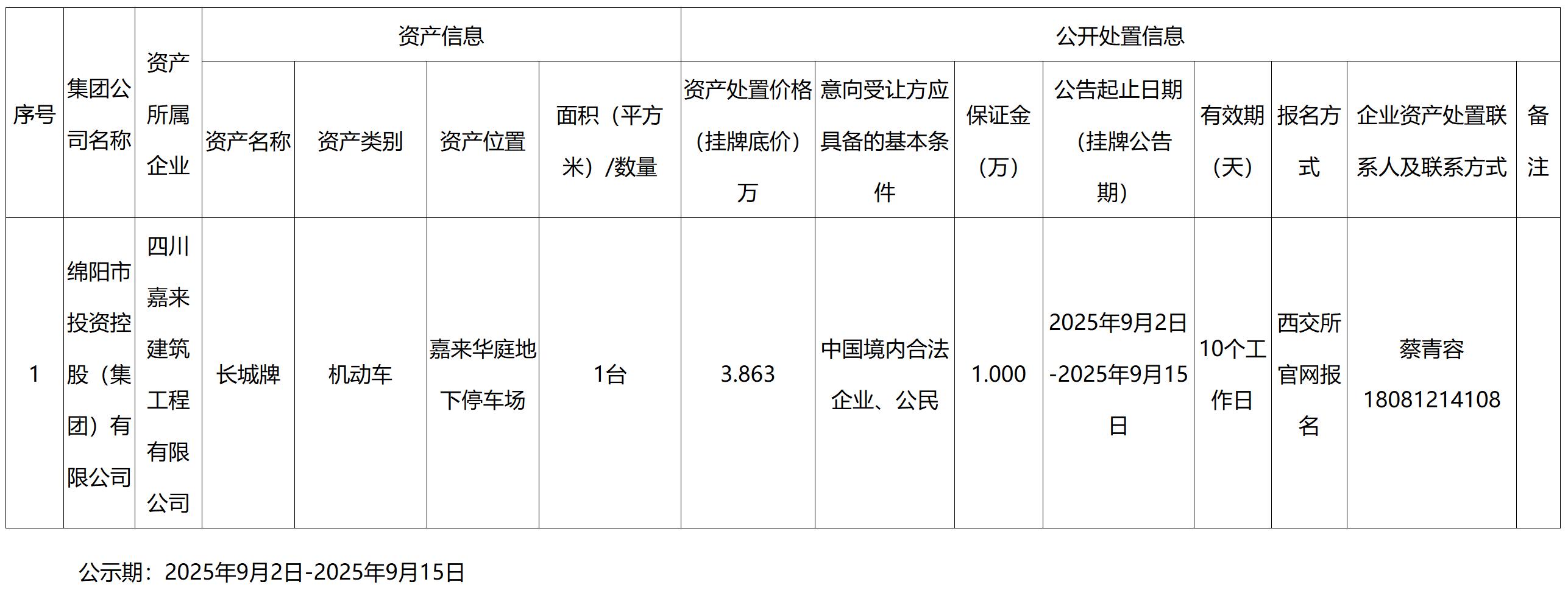 四川嘉來建筑工程有限公司企業(yè)資產(chǎn)處置公告