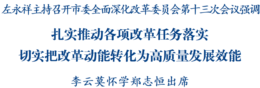 9月4日,市委全面深化改革委員會(huì)第十三次會(huì)議召開(kāi),省委常委、市委書記、市委全面深化改革委員會(huì)主任左永祥主持會(huì)議并講話。他強(qiáng)調(diào),要深入學(xué)習(xí)貫徹習(xí)近平總書記關(guān)于全面深化改革的重要論述,全面落實(shí)黨中央和省委決策部署,扎實(shí)推動(dòng)各項(xiàng)改革任務(wù)落實(shí),切實(shí)把改革動(dòng)能轉(zhuǎn)化為高質(zhì)量發(fā)展效能。