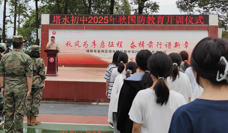 綿陽新聞網(wǎng)訊 9月2日,安州區(qū)塔水鎮(zhèn)初級中學(xué)在操場上舉行了以“紅心向祖國,快樂啟新程”為主題的2025年秋季學(xué)期開學(xué)典禮暨國防教育開訓(xùn)儀式。全校師生齊聚一堂,共同開啟新學(xué)期的征程。