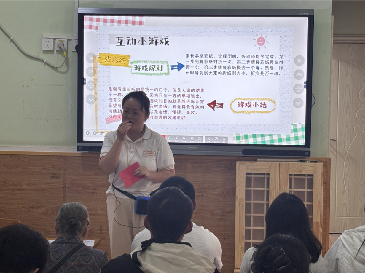 會議伊始,老師們通過精心設計的會前小游戲《你說我做》和《撕紙樂》,迅速拉近了與家長的距離。隨后,老師們詳細講解了各年齡段幼兒的發(fā)展目標,并就本學期的班級情況、教學重點、活動安排、一日生活流程及行為習慣培養(yǎng)等內(nèi)容,向家長們進行了深入淺出的解讀。結合幼兒的年齡特點,老師們分析了孩子們在園的表現(xiàn)和成長變化,并針對如何幫助幼兒順利適應新學期生活、培養(yǎng)良好的生活及學習習慣等方面,提出了科學的教育建議。