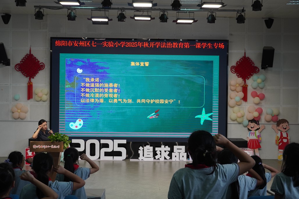 為了深入貫徹落實未成年人保護(hù)工作,增強學(xué)生法治意識,營造安全和諧的校園環(huán)境,9月2日,安州區(qū)“七一”實驗小學(xué)聯(lián)合安州區(qū)法院在該校學(xué)術(shù)廳舉辦了以“守護(hù)少年的你——向校園欺凌說'不'”為主題的2025年秋法治教育活動。此次活動以創(chuàng)新形式將法治教育融入校園德育體系,為全校師生帶來了一堂生動的法治實踐課。