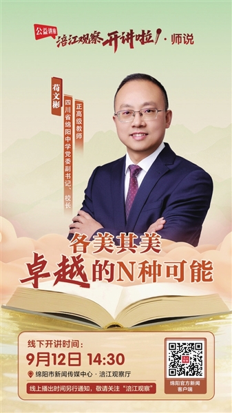 “涪江觀察開講啦”第一季“開講啦·師說”首期節(jié)目,特別邀請開講嘉賓四川省綿陽中學(xué)黨委副書記、校長茍文彬。他將現(xiàn)場分享學(xué)校如何搭建“成長沃土”,讓教育的“綿陽樣本”更具溫度與力量;在多樣化的課程體系下,不同興趣和潛質(zhì)的學(xué)生如何找到屬于自己的成長路徑?多才多藝的“學(xué)霸”是如何養(yǎng)成的?如何合理分配時間,既能提升學(xué)業(yè)又能快樂玩耍?……