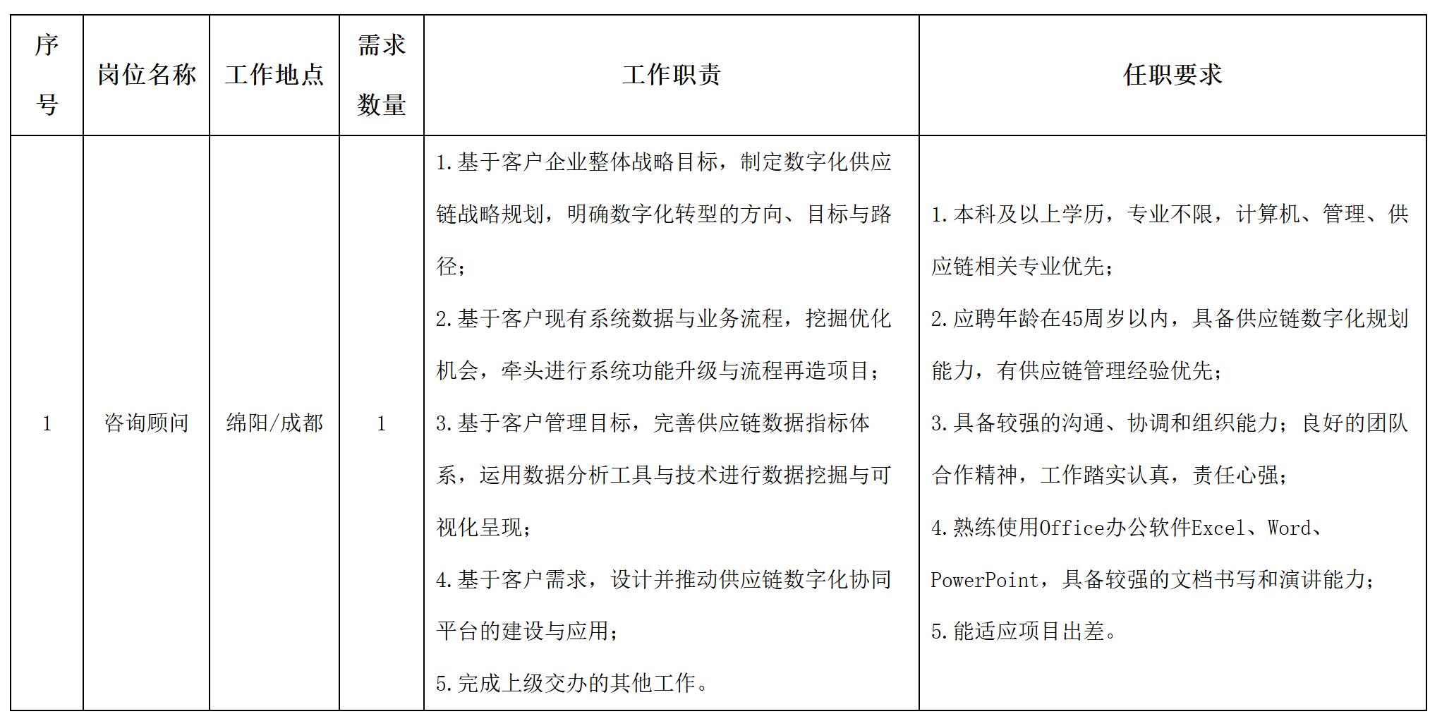 根據(jù)公司經(jīng)營發(fā)展需要,面向社會公開招聘以下崗位: