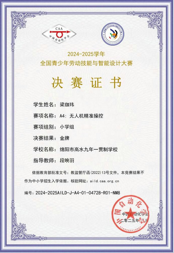 綿陽新聞網(wǎng)訊 近日,在2024—2025 學(xué)年全國青少年勞動(dòng)技能與智能設(shè)計(jì)大賽”中,綿陽市高水九年一貫制學(xué)校(城北七中)小學(xué)部梁珈瑋同學(xué)憑借扎實(shí)的勞動(dòng)技能知識(shí)、出色的智能設(shè)計(jì)創(chuàng)意以及沉穩(wěn)的現(xiàn)場(chǎng)發(fā)揮,一路過關(guān)斬將,最終在眾多優(yōu)秀選手中脫穎而出,斬獲金牌。這一優(yōu)異成績(jī)的取得,不僅是梁珈瑋同學(xué)個(gè)人的榮譽(yù),更是該校科技教育成果的有力見證。