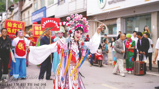 晨霧如紗,輕籠田野山丘。恰逢農(nóng)歷七月初七,三臺縣忠孝鄉(xiāng)雙勝場街道上,鑼鼓驟響,鞭炮齊鳴,民俗巡游點(diǎn)燃了第一把火,龍舞翻騰似金鱗破云,獅燈躍動(dòng)如猛虎下山,采蓮船搖曳生姿,馬馬燈蹄聲噠噠……忠孝鄉(xiāng)仙女山七夕節(jié)民俗活動(dòng)熱鬧非凡,數(shù)萬游客與村民涌向山道,人潮如織,笑語喧天。