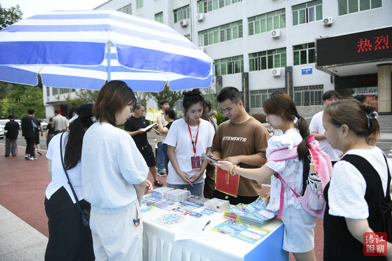 活動現(xiàn)場人氣爆棚,新生們紛紛拿起手機,掃碼關注綿陽商務公眾號并下載涪江觀察APP參與活動,開心地在打卡墻拍照、轉輪盤抽獎。