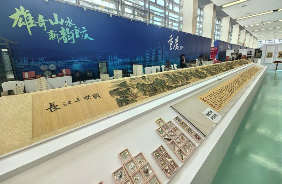 在同日開(kāi)啟的長(zhǎng)江流域非遺精品展上,13.98米長(zhǎng)的梁平竹簾作品《長(zhǎng)江三峽圖》展卷長(zhǎng)鋪,彭水苗繡作品《砥柱銘》書(shū)法氣韻生動(dòng),苗族銀飾亮眼奪目,四川蜀錦細(xì)膩逼真……展會(huì)還邀請(qǐng)了各地傳承人,現(xiàn)場(chǎng)展示非遺技藝,讓地圖上的非遺印記落地可感。