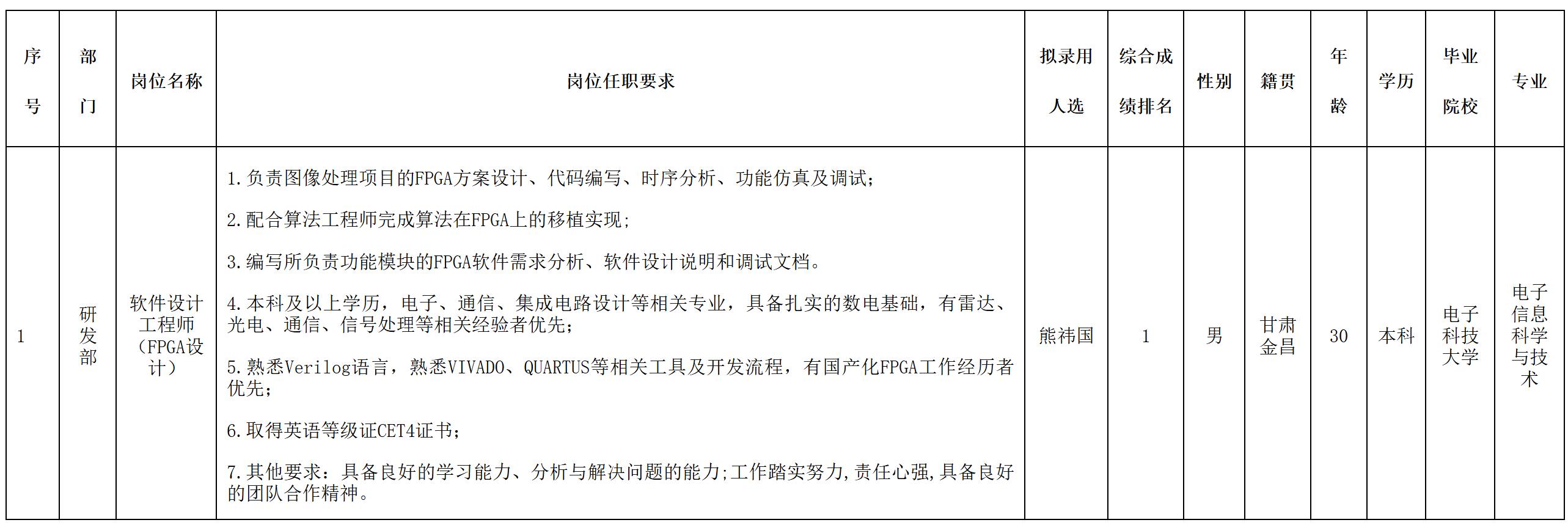 根據四川長虹電子科技有限公司發(fā)布的招聘公告及招聘相關規(guī)定,經筆試、面試、考察、體檢等程序,擬錄用熊祎國同志到公司研發(fā)部工作,現予以公示,具體情況如下: