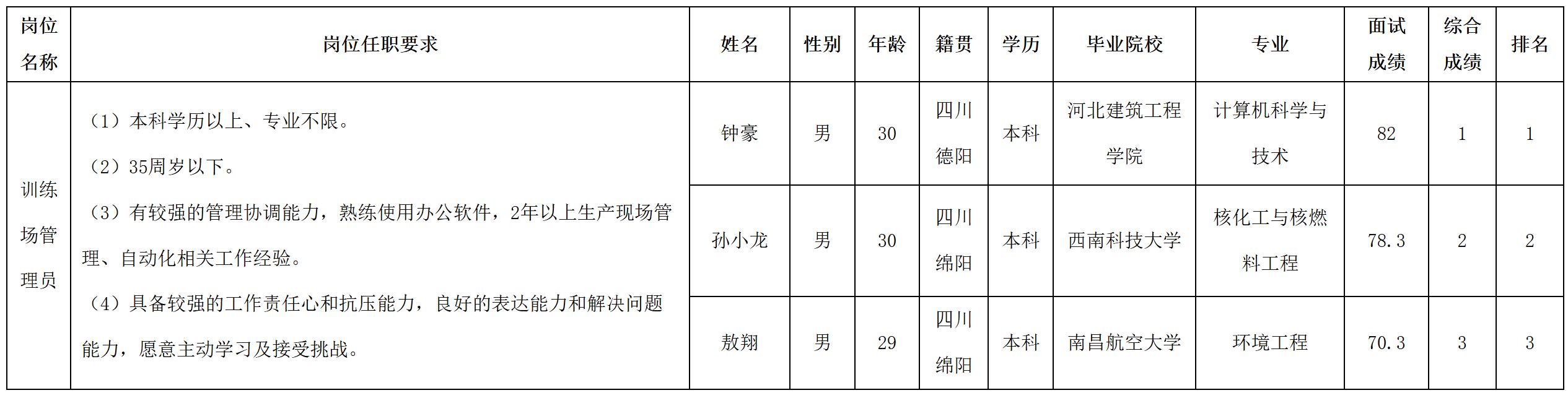 根據(jù)四川長虹虹微科技有限公司發(fā)布的招聘公告及招聘相關(guān)規(guī)定,經(jīng)面試等程序,現(xiàn)將成績予以公示。