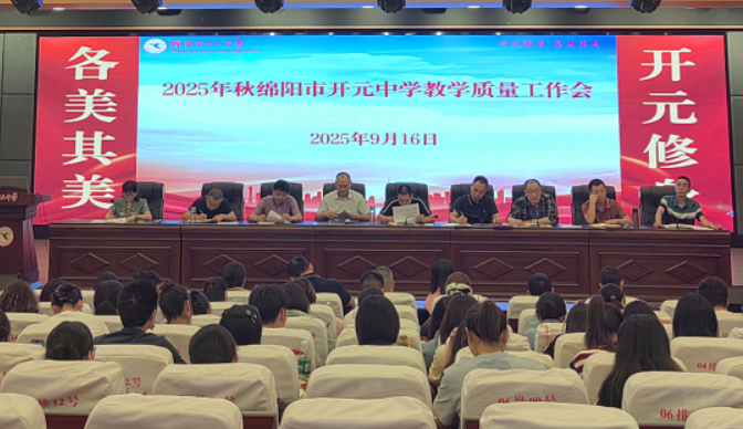 綿陽(yáng)新聞網(wǎng)訊 9月16日下午,綿陽(yáng)市開元中學(xué)在和美樓六樓學(xué)術(shù)廳召開了以“聚焦核心議題 共繪發(fā)展藍(lán)圖”為主題的2025年秋季教學(xué)質(zhì)量專題會(huì)議。會(huì)議旨在全面總結(jié)過(guò)往教學(xué)經(jīng)驗(yàn),精準(zhǔn)部署新學(xué)期工作重點(diǎn),圍繞教學(xué)常規(guī)管理、青年教師培養(yǎng)、課改深化推進(jìn)以及安全管理等核心議題展開,力求凝聚共識(shí)、實(shí)現(xiàn)創(chuàng)新突破,推動(dòng)學(xué)校教學(xué)質(zhì)量再上新臺(tái)階。該校黨委書記王力,黨委副書記、校長(zhǎng)敬正雄,各年級(jí)分管領(lǐng)導(dǎo)以及全體質(zhì)量組長(zhǎng)參會(huì)。會(huì)議由教科室副主任陽(yáng)林鳳主持。