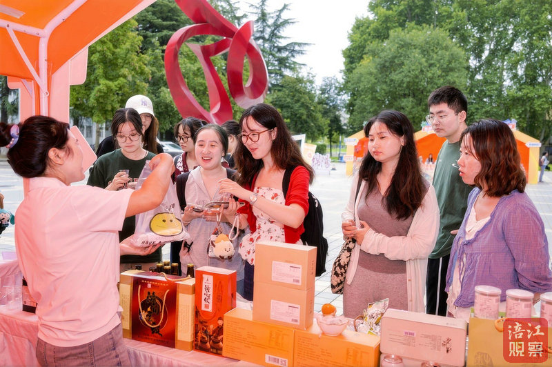在各大高校招聘區(qū)旁,綿陽(yáng)精心設(shè)置了“名特優(yōu)”展示專區(qū),呈現(xiàn)了羌繡、米粉等特色文創(chuàng)產(chǎn)品、地道美食。學(xué)子們?cè)谇舐氈囫v足體驗(yàn),歡聲笑語(yǔ)不絕,現(xiàn)場(chǎng)氣氛熱烈,為招聘會(huì)注入了溫馨的煙火氣。“來(lái)綿陽(yáng),不僅有舌尖美味,還有詩(shī)與遠(yuǎn)方,更有廣闊舞臺(tái),希望大家選擇綿陽(yáng)。”市委常委、副市長(zhǎng)吳昊在西安交通大學(xué)招聘區(qū)巡場(chǎng)并與學(xué)生們交流。
