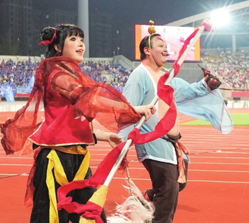 入場完畢后,綿陽特色方隊再次呼喊“星耀九洲 盛世長虹”口號,并配合各自角色的標志性動作定格,那一刻,整個球場被觀眾的熱情點燃,現場氣氛達到高潮。