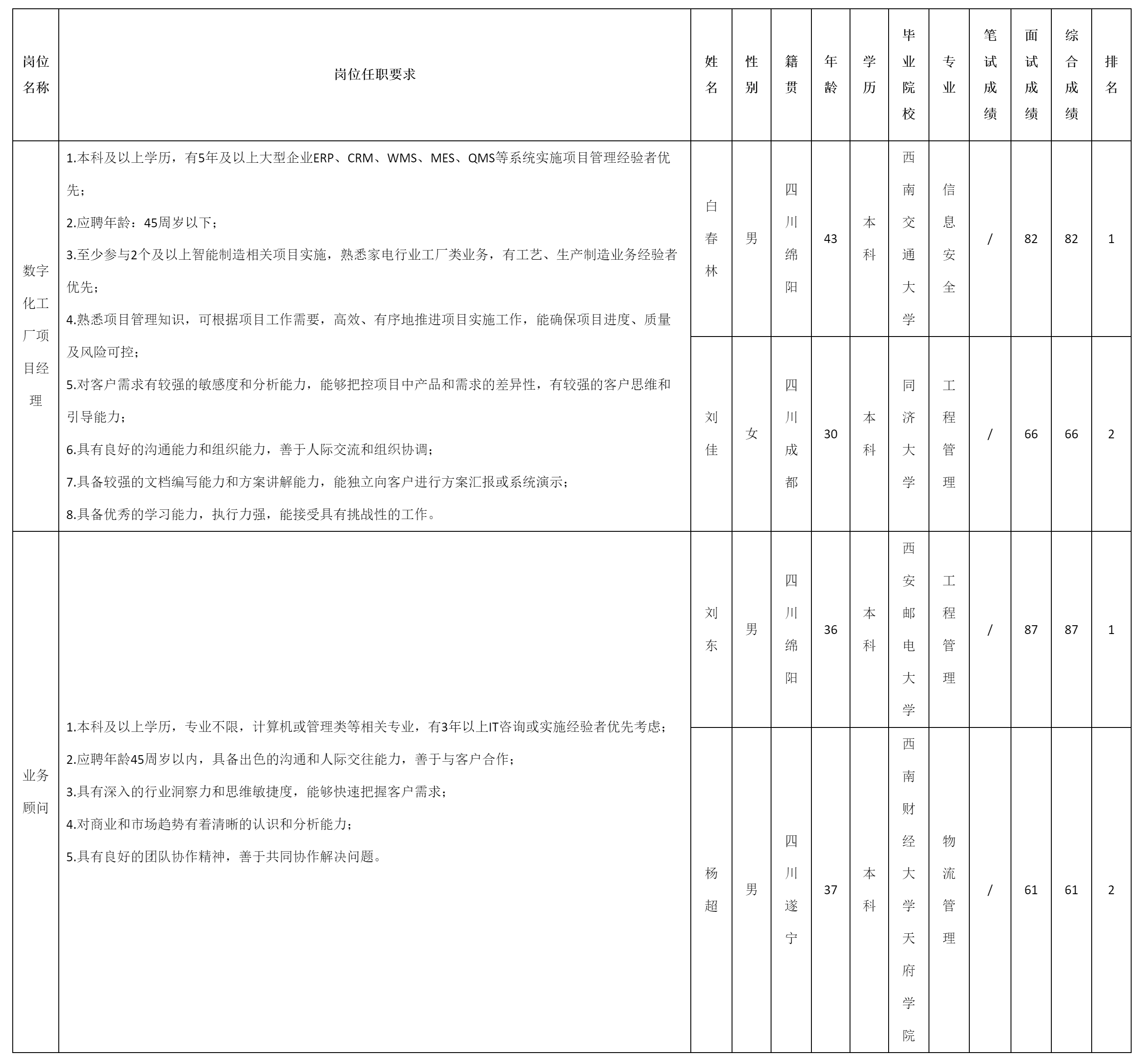 根據(jù)四川虹信軟件股份有限公司發(fā)布的招聘公告及招聘相關(guān)規(guī)定,經(jīng)面試等程序,現(xiàn)將面試成績予以公示。