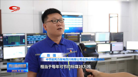 中節(jié)能風(fēng)力發(fā)電四川有限公司云頂山風(fēng)電場(chǎng)場(chǎng)長(zhǎng) 陳強(qiáng):相當(dāng)于每年可節(jié)約標(biāo)煤18萬(wàn)噸,每年可減少二氧化碳排放量約46萬(wàn)噸、二氧化硫排放量約4200噸。