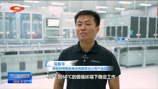 綿陽(yáng)創(chuàng)明智能電池有限責(zé)任公司產(chǎn)品經(jīng)理 馬振華:我們的大圓柱電池可以在-30℃到60℃的極端環(huán)境下穩(wěn)定工作,應(yīng)用在輕型動(dòng)力、家庭儲(chǔ)能、特種裝備、具身機(jī)器人等多種領(lǐng)域,助力經(jīng)濟(jì)社會(huì)低碳綠色轉(zhuǎn)型。