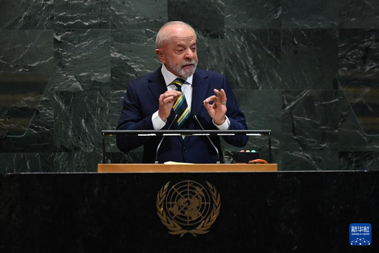9月23日,在位于紐約的聯(lián)合國總部,巴西總統(tǒng)盧拉出席第80屆聯(lián)合國大會一般性辯論時(shí)發(fā)表講話,強(qiáng)調(diào)國際社會應(yīng)捍衛(wèi)多邊主義和民主制度、反對單邊制裁和干涉主權(quán)國家,并呼吁維護(hù)拉美地區(qū)和平。新華社記者李睿 攝