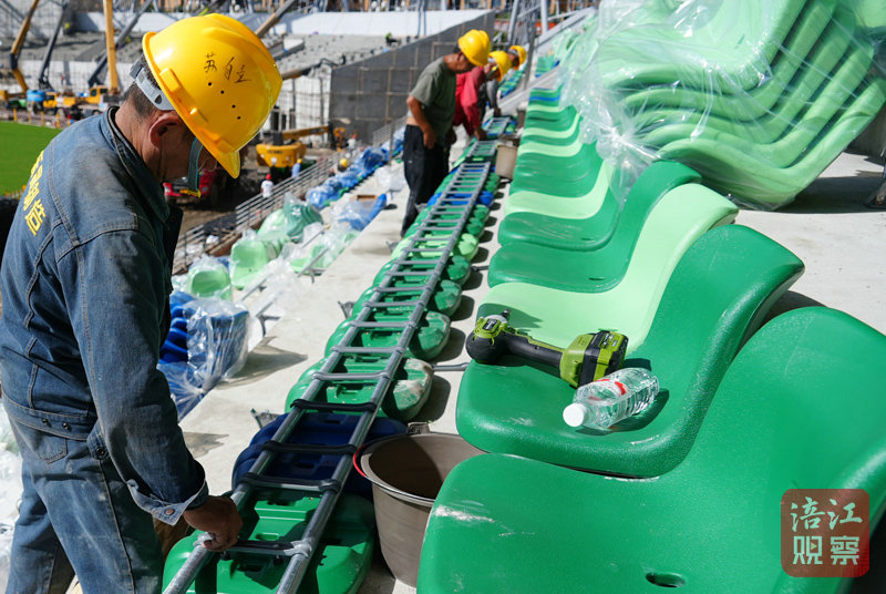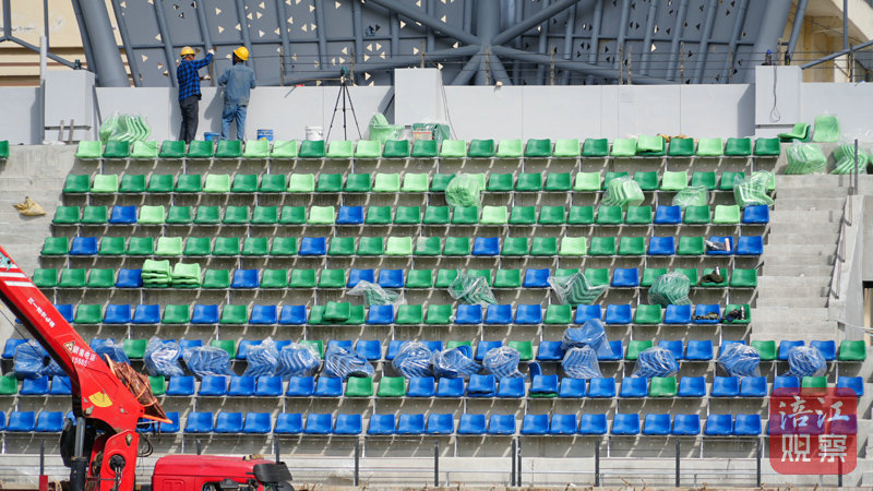 看臺(tái)區(qū)域是當(dāng)前施工的核心焦點(diǎn)。記者在現(xiàn)場(chǎng)看到,數(shù)十名工人分工協(xié)作、配合默契,正有條不紊地進(jìn)行座椅安裝作業(yè)。據(jù)項(xiàng)目負(fù)責(zé)人介紹,改造后的體育場(chǎng)看臺(tái)將設(shè)置上萬(wàn)個(gè)座位,結(jié)合三臺(tái)地域文化與生態(tài)特色,座椅選用青藍(lán)、深綠、淺綠三色漸變排布——下層青藍(lán)呼應(yīng)涪江岸畔的連綿遠(yuǎn)山,中層深綠象征流淌的涪江江面,上層淺綠則如近岸淺灘,通過(guò)色彩層次勾勒出“山水相依”的自然意象,既具視覺(jué)美感,又蘊(yùn)含本土韻味。