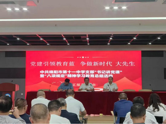 綿陽(yáng)新聞網(wǎng)訊 為了深入貫徹黨的教育方針,推動(dòng)教育事業(yè)高質(zhì)量發(fā)展,9月18日,中共綿陽(yáng)市第十一中學(xué)黨支部開(kāi)展“書(shū)記講黨課”暨“八項(xiàng)規(guī)定”精神學(xué)習(xí)教育總結(jié)活動(dòng)。黨支部全體黨員教師參加會(huì)議。