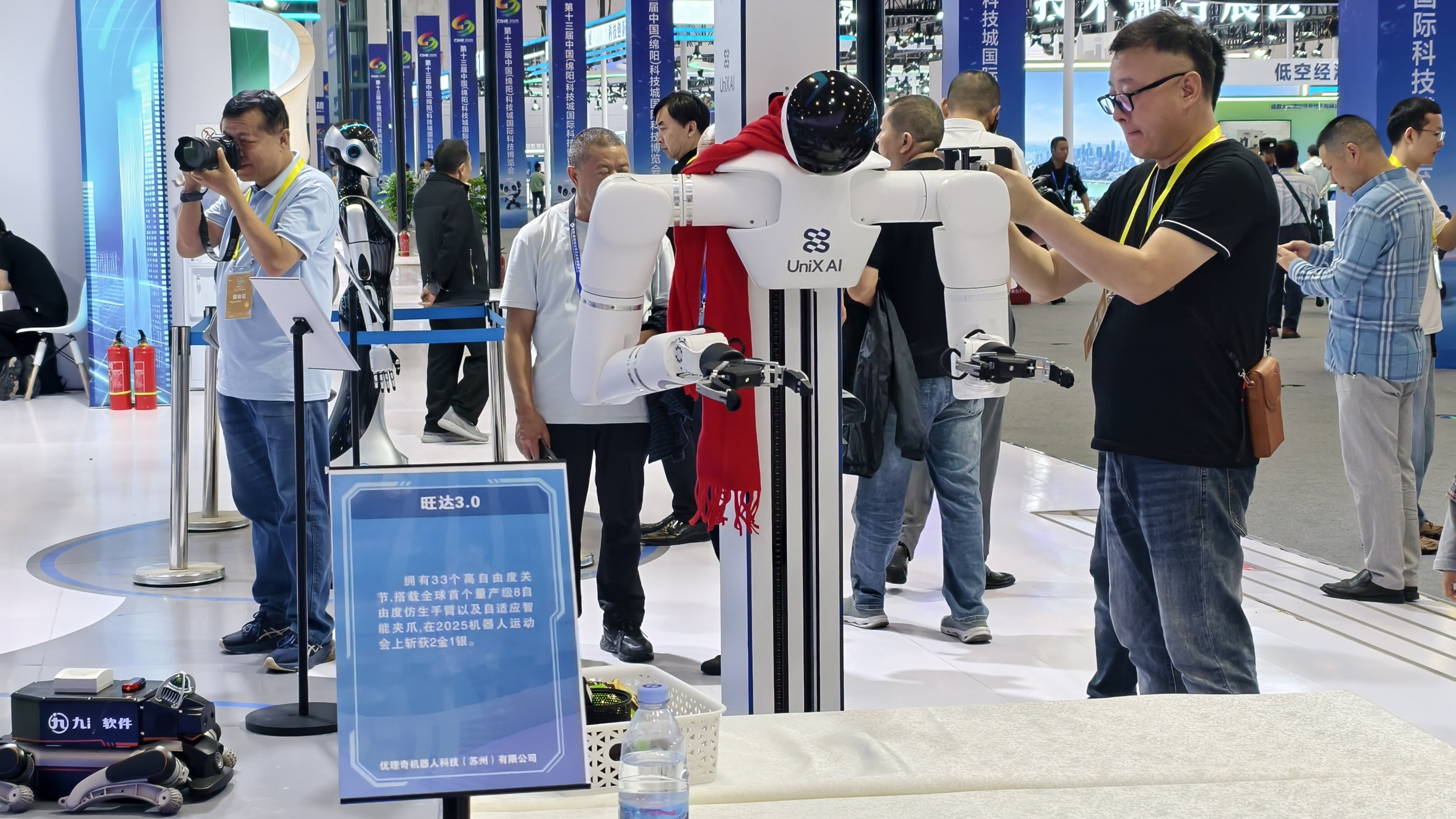 此外,“低空智行”運(yùn)營(yíng)服務(wù)平臺(tái)、四足機(jī)器人、旺達(dá)3.0機(jī)器人、長(zhǎng)虹靈曦人形機(jī)器人、九洲無(wú)人機(jī)防控指揮車等前沿展品更是成為焦點(diǎn),引得媒體記者紛紛拍照留念。