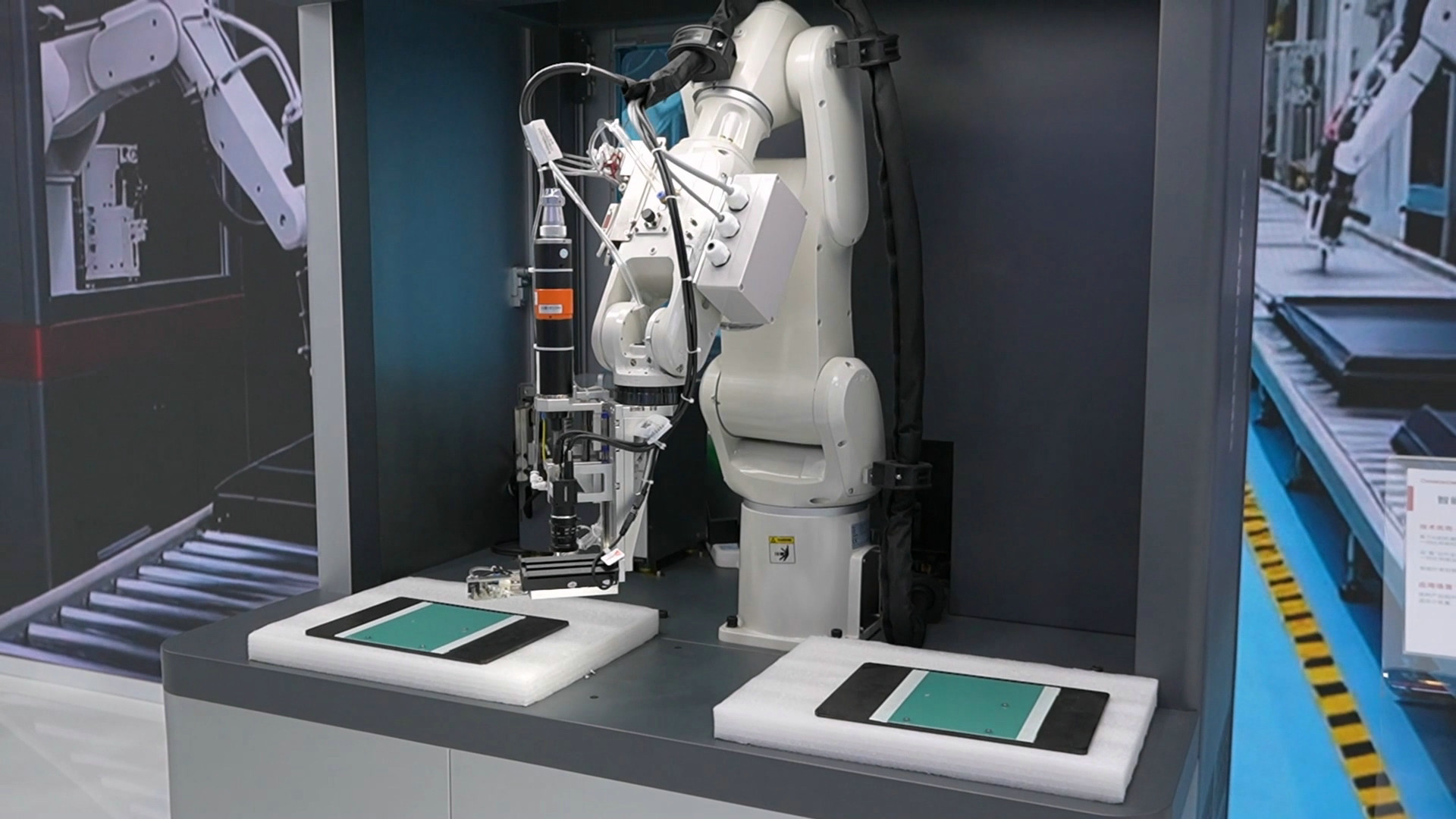 長(zhǎng)虹智能機(jī)器人公司軟件研發(fā)工程師翟亞輝介紹,其鎖付良率高達(dá)99.9%,混線生產(chǎn)能力很強(qiáng),已進(jìn)入智慧顯示工廠一號(hào)線投產(chǎn),為工廠增加了40%的鎖付效率。
