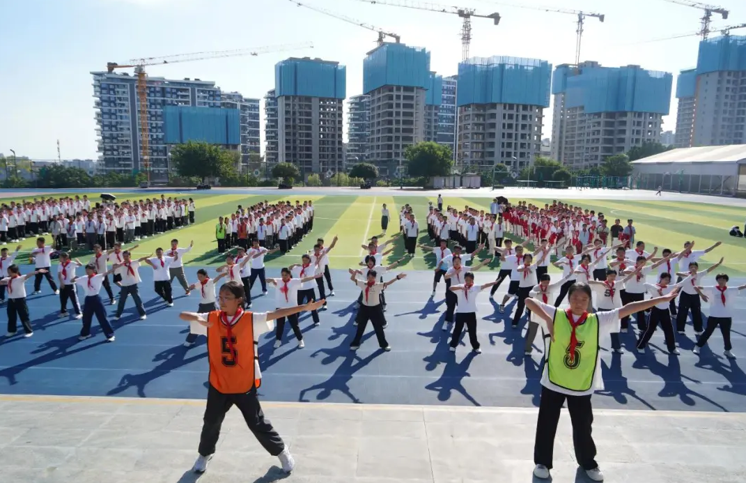 賽前1周,該校多部門協(xié)同啟動籌備工作,為比賽的順利開展保駕護航。體育老師利用大課間和體育課時間,針對手臂角度、節(jié)奏配合等易錯點對各班進行專業(yè)指導,課后由領(lǐng)操員帶領(lǐng)復習,確保動作整齊劃一。