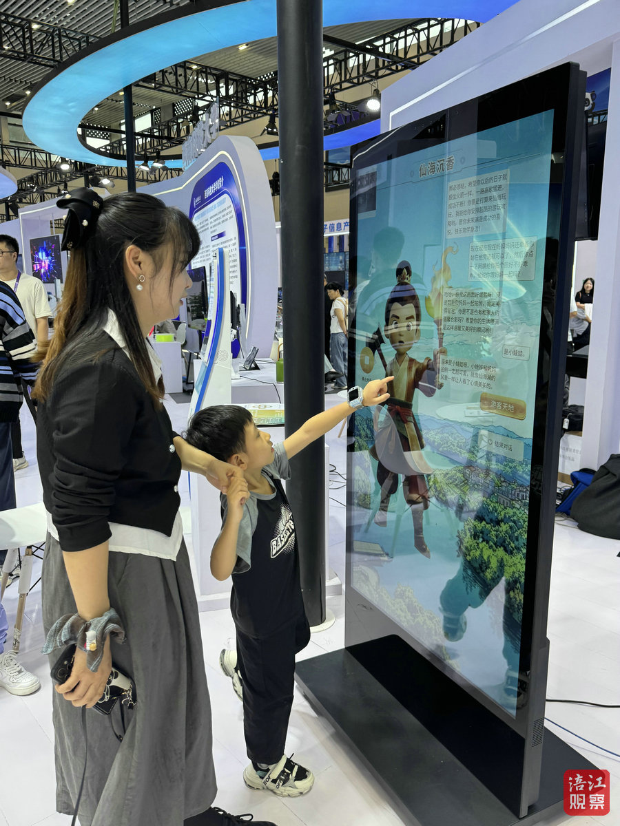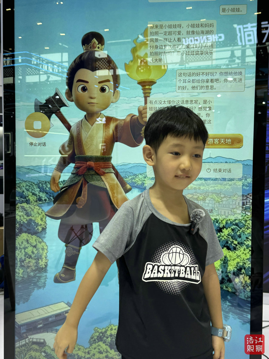 市民鄧女士帶著5歲的兒子范伽辰停步于“仙海沉香”數(shù)字人展臺前。范伽辰踮起腳輕觸屏幕上的“點擊喚醒”圖標,身著傳統(tǒng)服飾的“沉香”瞬間“活”了過來。這正是人工智能技術(shù)落地文旅場景的生動縮影。