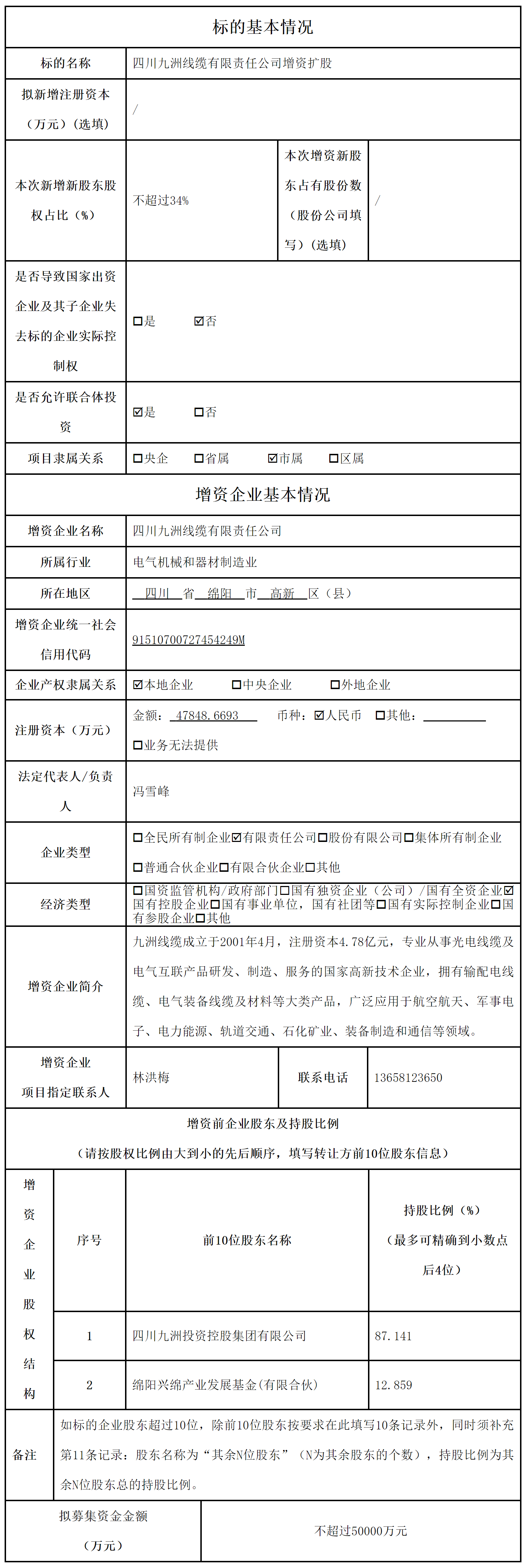 四川九洲線纜有限責(zé)任公司增資擴(kuò)股項(xiàng)目信息預(yù)披露